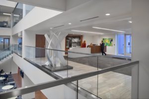 Infinity served as Construction Manager At-Risk project entailed complete interior demolition, design and re-construction of an existing 70,000-sf 4-story medical office building for adaptive reuse as a corporate headquarters in Westlake, Ohio. Reconstruction involved stripping the existing building down to its structural frame and rebuilding the entire building exterior and roof. Complete demolition and re-build of all MEP and IT systems. All new high end corporate office interiors; kitchen and café dining facilities, spa and fitness center, and a new 4-story atrium and skylight. This new building consolidated employees from three separate buildings into the new headquarters.